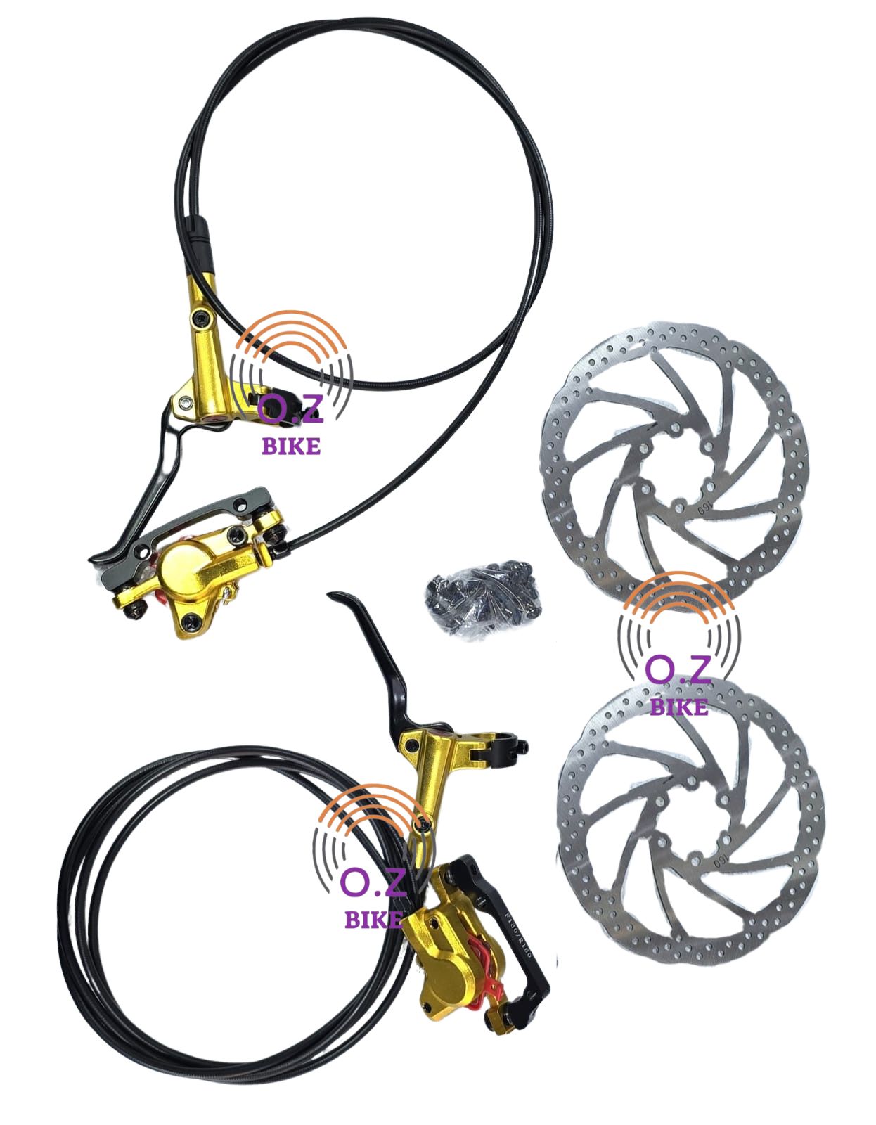 2 בוכנות כולל 2 דיסקים 160 מ”מ אורך צינור קדמי: כ- 1.05 מטר, אורך צינור אחורי כ- 1.95 מטר